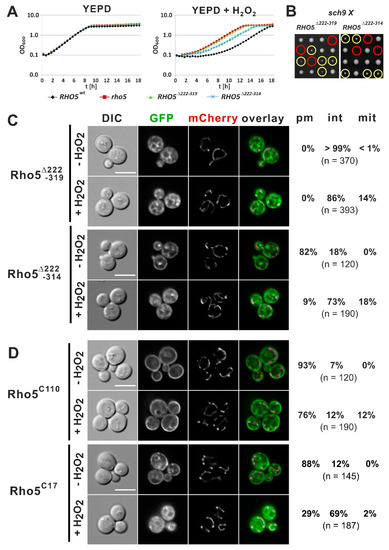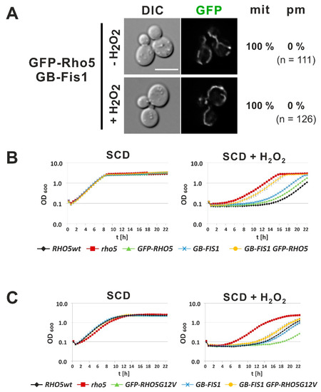 2.4. In Vivo Trapping of GFP-Rho5 to the Mitochondrial Surface Affects Its Physiological Functions
