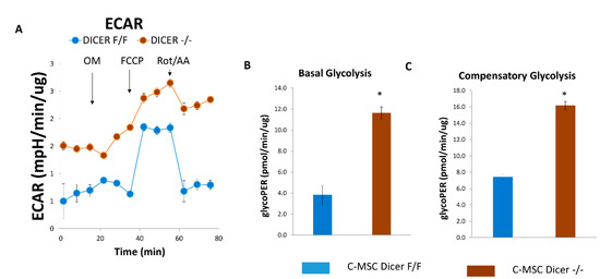2.4. Dicer Gene Deletion Increases Glycolysis in C-MSC