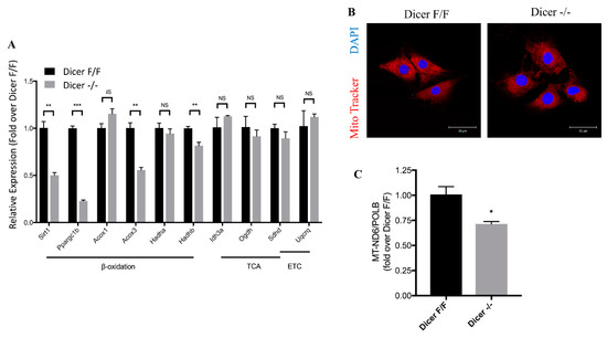 2.5. Dicer Deletion Decreases Mitochondrial Fatty Acid β-Oxidation in C-MSC