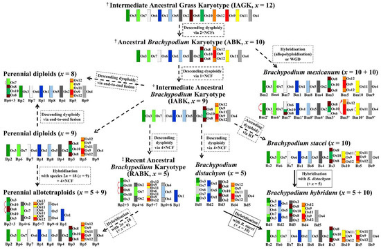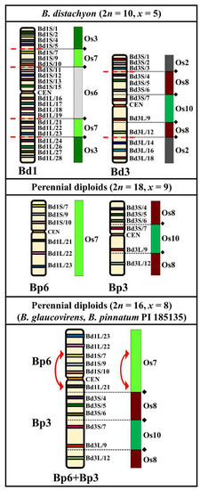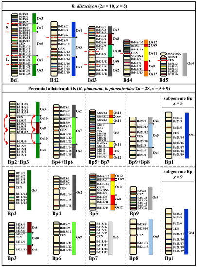 | Bp | Chromosome complement(s) of Brachypodium perennials (x = 9, 8, and 5) |