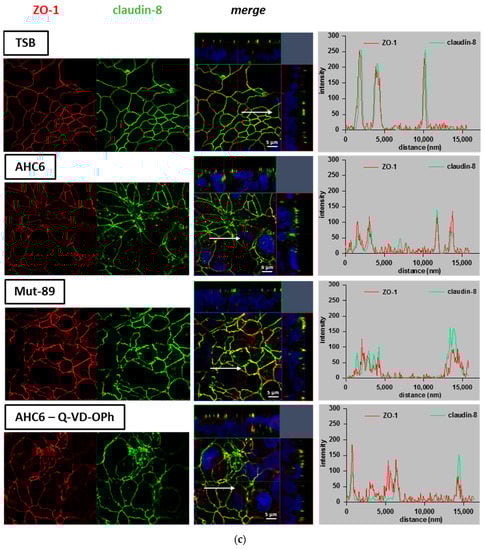- Bojarski, C.; Weiske, J.; Schoneberg, T.; Schroder, W.; Mankertz, J.; Schulzke, J.D.; Florian, P.; Fromm, M.; Tauber, R.; Huber, O. The specific fates of tight junction proteins in apoptotic epithelial cells. J. Cell. Sci. 2004, 117, 2097–2107. [Google Scholar] [CrossRef] [PubMed]