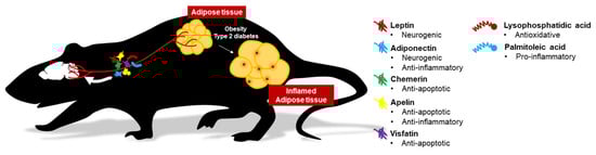 - Parimisetty, A.; Dorsemans, A.C.; Awada, R.; Ravanan, P.; Diotel, N.; Lefebvre d’Hellencourt, C. Secret talk between adipose tissue and central nervous system via secreted factors-an emerging frontier in the neurodegenerative research. J. Neuroinflamm. 2016, 13, 67. [Google Scholar] [CrossRef] [PubMed]