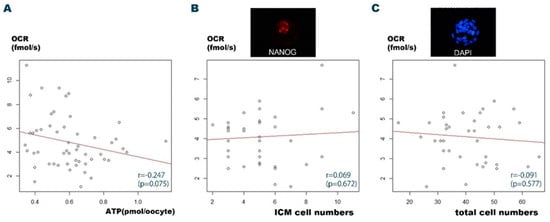2.2. Correlations between the OCR and the Adenosine Triphosphate (ATP) Levels and Cell Counts in Blastocysts Developed from a Single Embryo