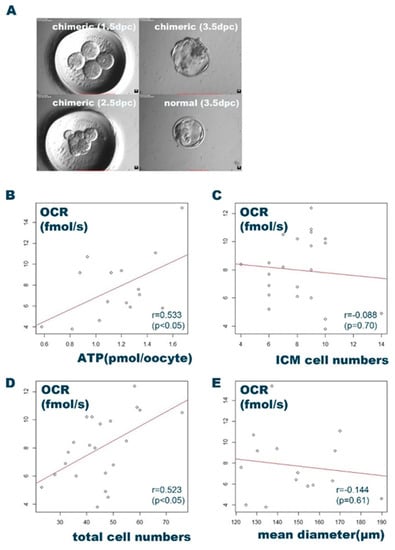 2.3. Correlations between the OCR and the ATP Levels and Cell Counts in Chimera Blastocysts