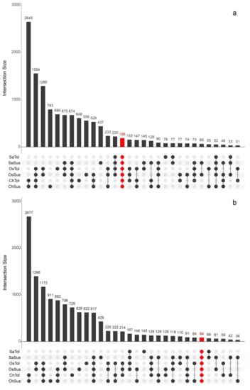 - Lex, A.; Gehlenborg, N.; Strobelt, H.; Vuillemot, R.; Pfister, H. UpSet: Visualization of Intersecting Sets. IEEE Trans. Vis. Comput. Graph. 2014, 20, 1983–1992. [Google Scholar] [CrossRef] [PubMed]