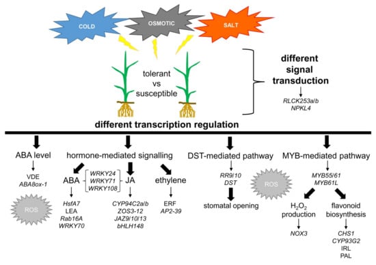 2.6. The ABA-Mediated Response Pathway and the Crosstalk with Other Signalling Pathways