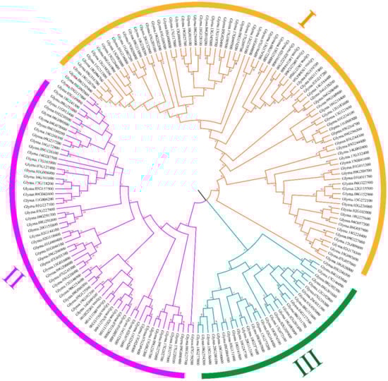 DYW subgroup PPR proteins sequences of soybean were downloaded from Phytozome []. Predicted proteins from the soybean genome (Glycine max Wm82.a2.v1) were scanned using HMMER v3 [] using the Hidden Markov Model (HMM) corresponding to the Pfam of PPR family (PF14432) []. The proteins obtained using the raw DYW HMM, a high-quality protein set (E-value < 1 × 10−20), were aligned and used to construct a soybean-specific DYW HMM profile using hmmbuild from the HMMER v3 suite. This new soybean-specific HMM was used to search for all members in all soybean proteins; in addition, all obtained proteins with an E-value lower than 0.01 were selected. The highly matched sequences were reorganized and merged to remove the redundancy. Then, all protein sequences of putative DYW subgroup PPR genes were submitted to the SMART database [] and Pfam database to confirm the existence of the DYW conserved domain. The sequences lacking a DYW domain were refused in this study. Furthermore, molecular weights and isoelectric points identified that the DYW subgroup PPR proteins were obtained by using tools from EXPASY website [].