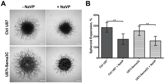 2.3. Effects of Sema3C and NaVP on Glioblastoma U87 Cell Invasion In Vitro