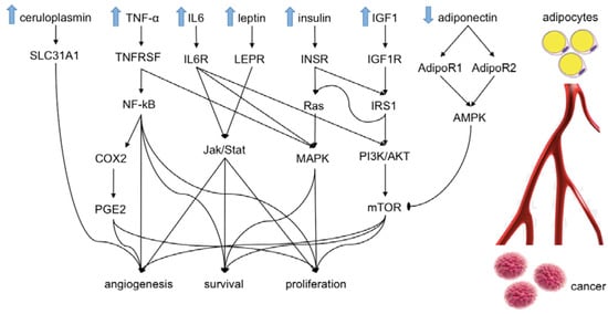 - Lengyel, E.; Makowski, L.; DiGiovanni, J.; Kolonin, M.G. Cancer as a Matter of Fat: The Crosstalk between Adipose Tissue and Tumors. Trends Cancer 2018, 4, 374–384. [Google Scholar] [CrossRef]