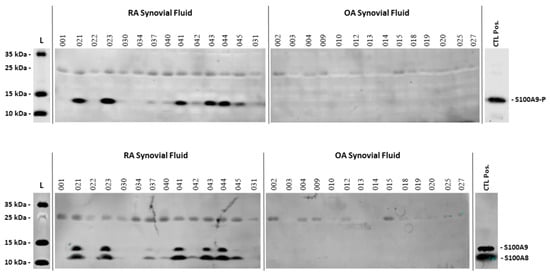 2.1. S100A9 Is Phosphorylated in Synovial Fluids from Rheumatoid Arthritis Patients