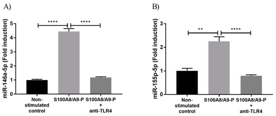 2.3. S100A8/A9-P Induces miR-146a and miR-155 Expression through TLR4 Signaling Pathways