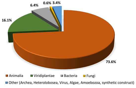 Distribution of AMPs across kingdoms based on sequences in the CAMPR3 database. (http://www.camp.bicnirrh.res.in/dbStat.php) [48].