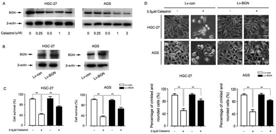 2.2. Celastrol Down-Regulated the Expression of BGN Leading to HGC-27 and AGS Cell Death