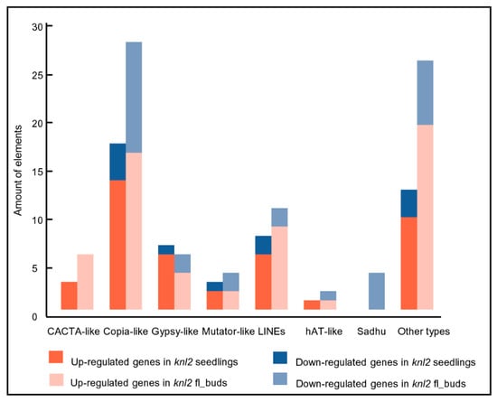 2.3. Reduced DNA Methylation in the knl2 Mutant Might Be Responsible for the Activation of a High Number of Transposons