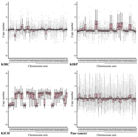 KIRP also exhibited loss in 22q (CCN = 1.84, STD = 0.22) while KICH tissue showed a gain (CCN = 2.33, STD = 0.317, p = 1.44 × 10−20) compared to the pan cancer (CCN = 1.92, STD = 0.29, p = 1.71 × 10−38).
