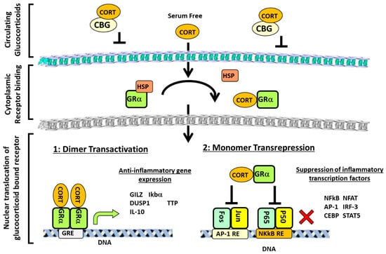 - Reichardt, H.M.; Tuckermann, J.P.; Göttlicher, M.; Vujic, M.; Weih, F.; Angel, P.; Herrlich, P.; Schütz, G. Repression of inflammatory responses in the absence of DNA binding by the glucocorticoid receptor. EMBO J. 2001, 20, 7168–7173. [Google Scholar] [CrossRef] [PubMed]
