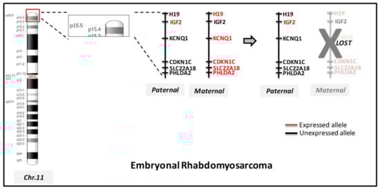 - Smith, A.C.; Squire, J.A.; Thorner, P.; Zielenska, M.; Shuman, C.; Grant, R.; Chitayat, D.; Nishikawa, J.L.; Weksberg, R. Association of alveolar rhabdomyosarcoma with the Beckwith-Wiedemann syndrome. Pediatr. Dev. Pathol. 2001, 4, 550–558. [Google Scholar] [CrossRef] [PubMed]