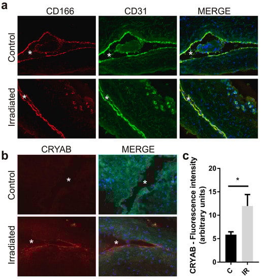 2.2. Radiation Stimulates Up-Regulation of CRYAB, but not CD166 Expression, in the Vascular Endothelium