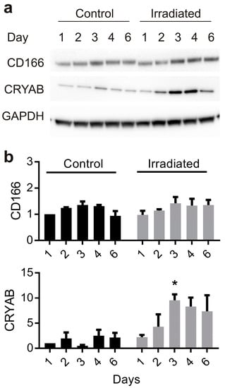 2.3. Radiation Alters Subcellular Localization of CD166 and CRYAB