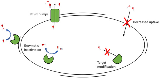 There are four mechanisms through which bacteria become resistance to antibiotics [10] (Figure 2):