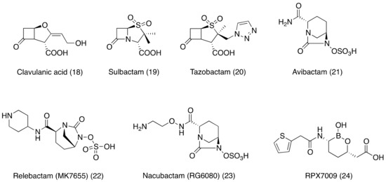 Chemical structures of β-lactamases inhibitors discussed in this review.