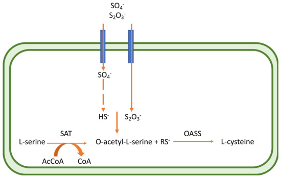 Most bacteria and plants carry out cysteine biosynthesis by the reductive sulfate assimilation pathway (RSAP), a multistep reduction of sulfate that culminates in the incorporation of bisulfide into cysteine using an activated form of serine [108].