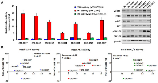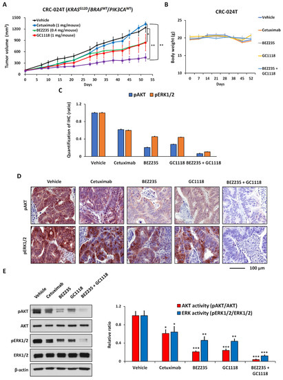2.3. Activation of AKT Signaling Confers Resistance to GC1118 Monotherapy in KRAS-Mutant CRC PDX Models