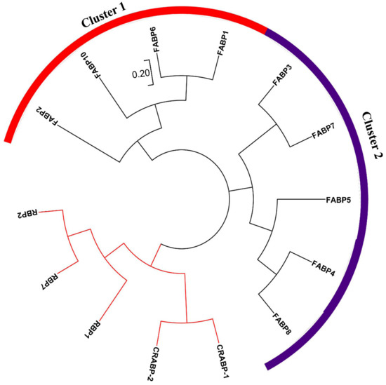 In order to cluster different subfamilies of these sequences, all of the screened amino acidsequences were used to analysis phylogenetic relationship based on the maximum likelihood method by MEGA 7.0 to confirm them as members of the chicken FABP gene family [76].