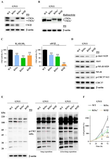 2.5. CK2 Knockout Affects GN11 Adhesion and Signal Transduction
