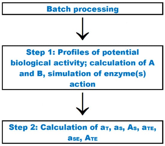 | Quantitative parameters characterizing occurrence and possibility of release of bioactive peptide from a set of sequences | Parameters calculated via the “batch processing” option—Equations (8)–(10) and (12)–(14) in the Table 5 |