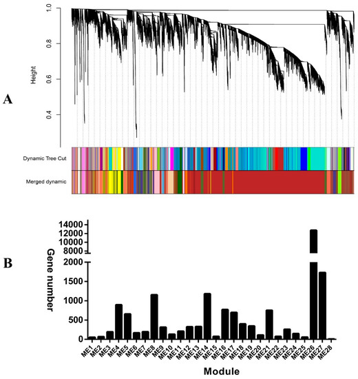 - Langfelder, P.; Horvath, S. WGCNA: An R package for weighted correlation network analysis. BMC Bioinformatics 2008, 9, 559. [Google Scholar] [CrossRef]