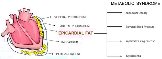 - Iacobellis, G.; Bianco, A.C. Epicardial adipose tissue: Emerging physiological, pathophysiological and clinical features. Trends Endocrinol. Metab. 2011, 22, 450–457. [Google Scholar] [CrossRef] [PubMed]