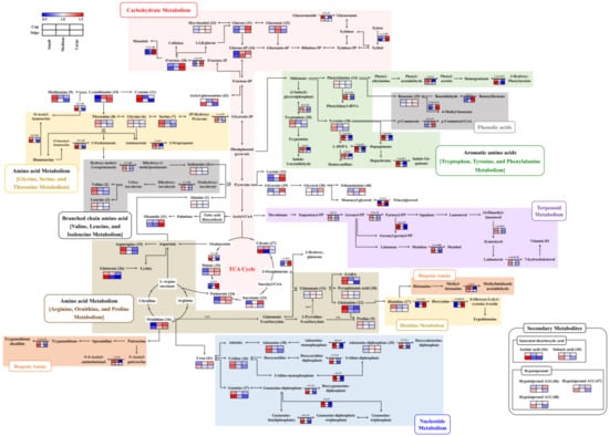 2.2. Comprehensive Metabolite Profiles and Related Differentially Expressed Gene