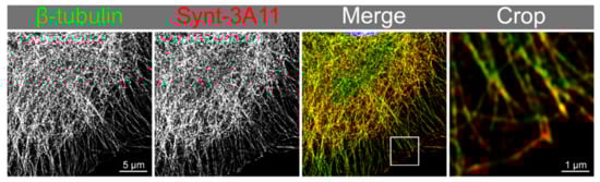 Synt-3A11 colocalises on microtubules depicted with β-tubulin.