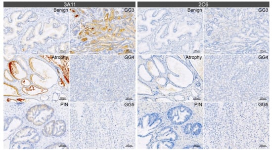 3.4. Immunohistochemistry with Synt-3A11 and Synt-2C6 Monoclonal Antibodies on Prostate Tissue