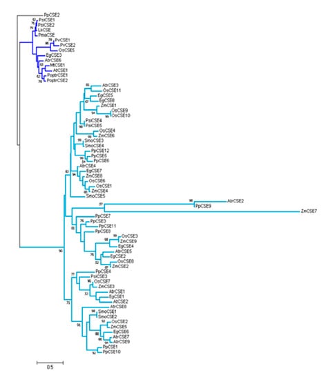 4.3. CSE Sequence Alignments and Phylogenetic Analyses