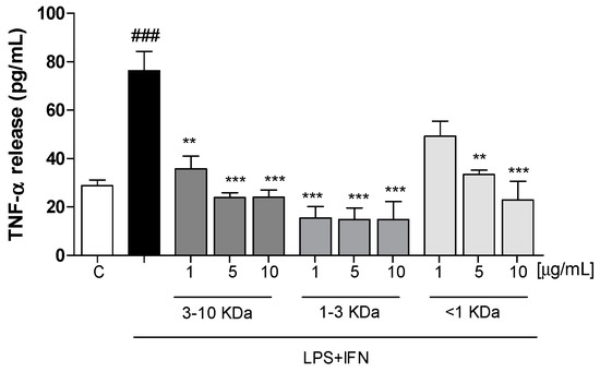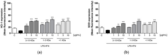 2.6. Peptide Fractions Increased HO-1 and SOD Expression in LPS + IFN-Stimulated IEC-6