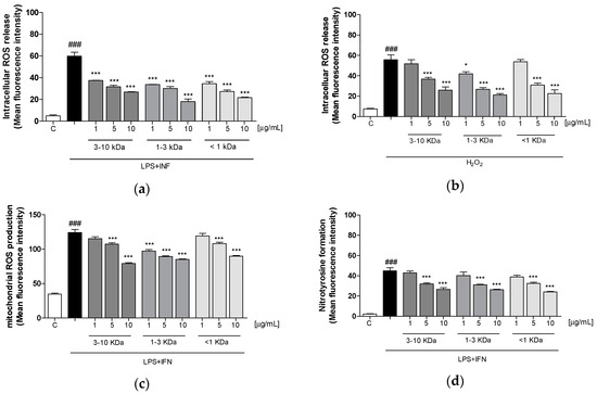 2.5. Peptide fractions Reduced Intracellular ROS Release, Mitochondrial Superoxide Production, and Nitrotyrosine Formation