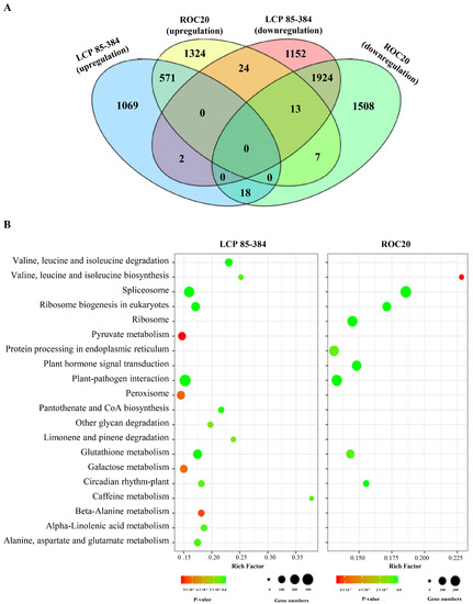 | Gene ID | KEGG Orthology | Gene description | LCP 85-384 | ROC20 | |||||