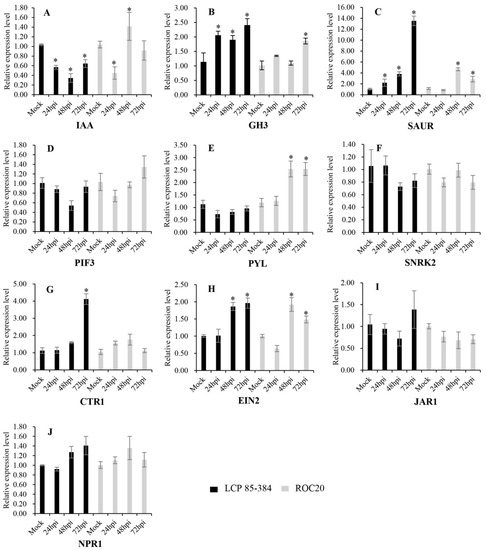 - Bari, R.; Jones, J.D. Role of plant hormones in plant defence responses. Plant Mol. Biol. 2009, 69, 473–488. [Google Scholar]