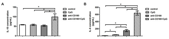 2.5. TLR Stimulation Differentially Affects IL-6 and IL-10 Production of B Cells