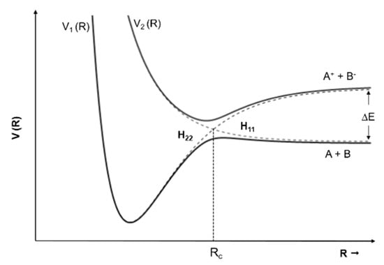 - Kleyn, A.; Los, J.; Gislason, E.A. Vibronic Coupling At Intersections of Covalent and Ionic States. Phys. Rep. 1982, 90, 1–71. [Google Scholar] [CrossRef]