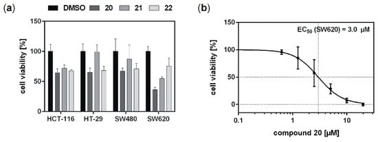 20 led to comparably strong effects on viability of SW620 colon cancer cells. Keeping in mind that cell lines SW480 and SW620 derived from primary tumor (SW480) and metastasis (SW620) of the same patient, this finding is of particular interest [