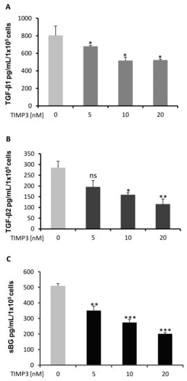 2.3. Effects of TIMP3 on TGF-βs and on Shedding of BG