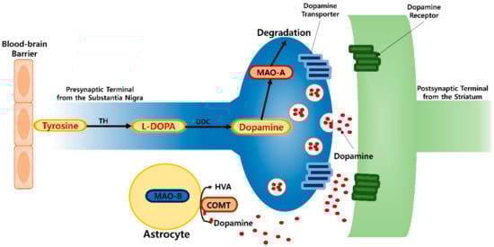 - Klein, M.O.; Battagello, D.S.; Cardoso, A.R.; Hauser, D.N.; Bittencourt, J.C.; Correa, R.G. Dopamine: Functions, signaling, and association with neurological diseases. Cell. Mol. Neurobiol. 2019, 39, 31–59. [Google Scholar] [CrossRef] [PubMed]