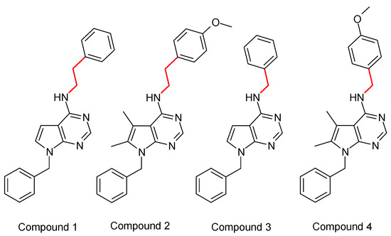 2.1. Binding of the Novel Pyrrolo-Pyrimidine Compounds to the sst4 Target In Silico: Structural Calculations