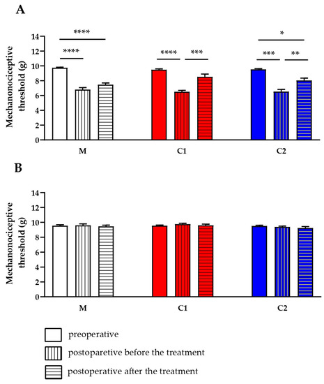 2.4. C1 and C2 Compounds Reduce Chronic Neuropathic Mechanical Hyperalgesia