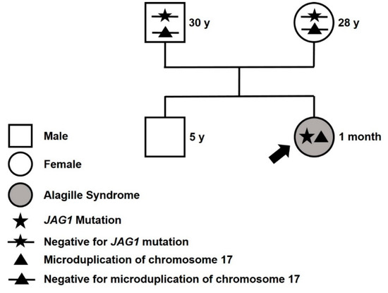 - Lin, H.C.; Le Hoang, P.; Hutchinson, A.; Chao, G.; Gerfen, J.; Loomes, K.M.; Krantz, I.; Kamath, B.M.; Spinner, N.B. Alagille syndrome in a Vietnamese cohort: Mutation analysis and assessment of facial features. Am. J. Med. Genet. A 2012, 158, 1005–1013. [Google Scholar] [CrossRef]
