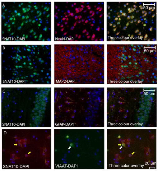 2.1. SNAT10 Is Expressed in Both Excitatory and Inhibitory Neurons