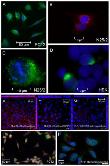 - Mackenzie, B.; Schafer, M.K.; Erickson, J.D.; Hediger, M.A.; Weihe, E.; Varoqui, H. Functional properties and cellular distribution of the system A glutamine transporter SNAT1 support specialized roles in central neurons. J. Biol. Chem. 2003, 278, 23720–23730. [Google Scholar] [CrossRef] [PubMed]